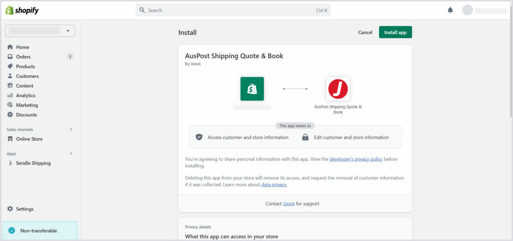 3. After installing, to access the app in shopify go to admin > App ( Apps & sales channels ) > AusPost Shipping Quote & Book.