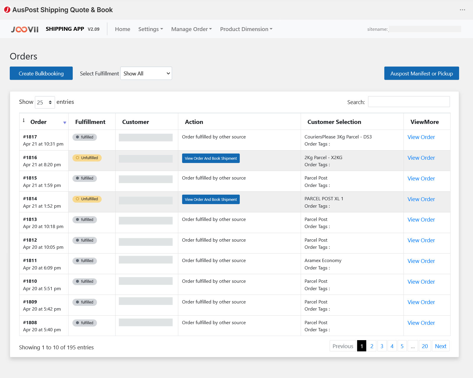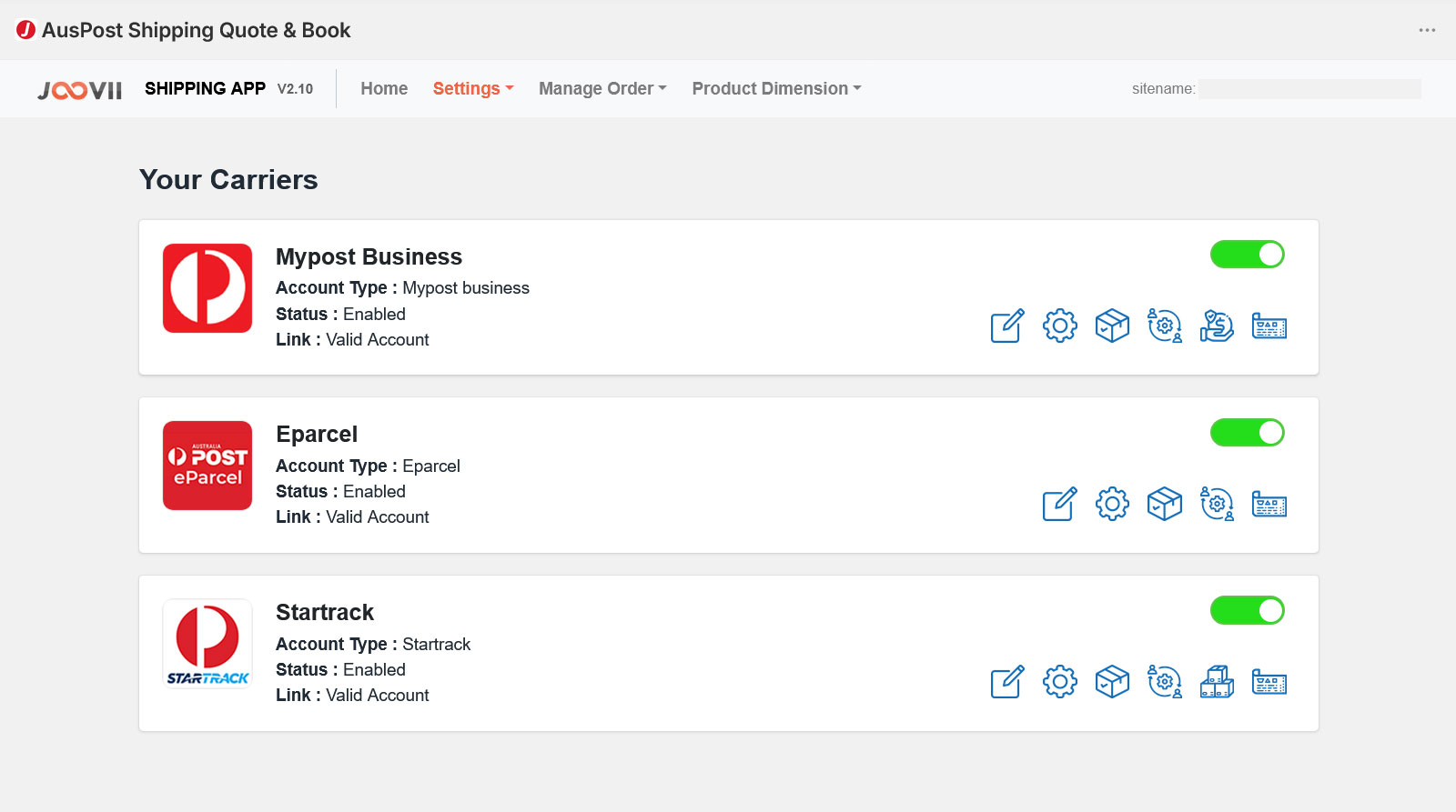 Settings : From settings merchant can add/edit Bulkbooking rate selection settings & domestic Settings. For Bulkbooking rate choose any one of this – 1.Select as the customer chose in the checkout or 2. Select from the auspost service. Also add/edit Domestic settings which will be applied by default to all domestic orders using this carrier. Each setting can be overridden on an order.