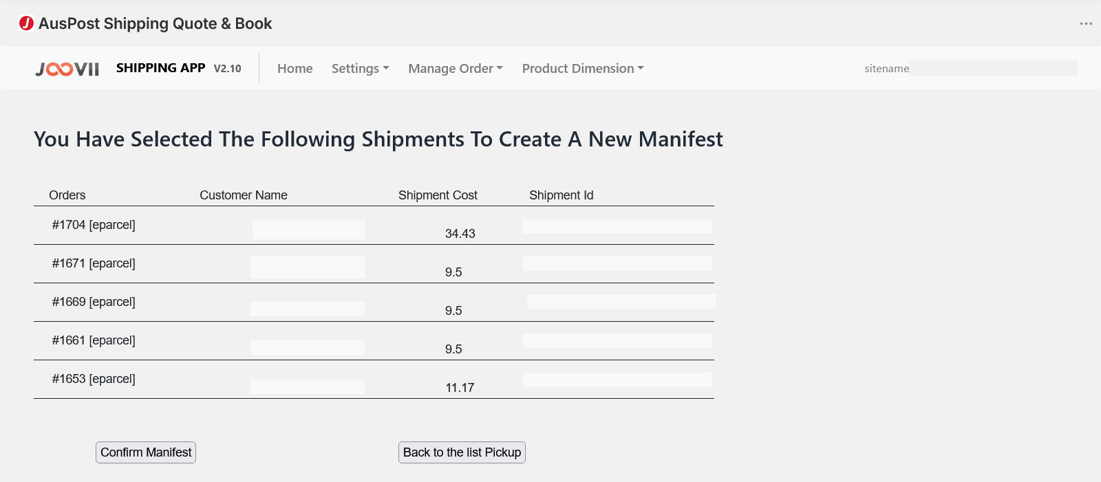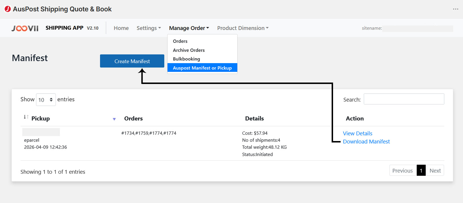 For eparcel and startrack account you can create pickup or manifest or order summary from the shipment you booked recently. You can’t assign any shipment to a pickup which has already been assigned to another pickup. In each shipofy order of our app you can see a create pickup link and in the top-menu(under manage order) of our app you can see a link to manage pickup. In manage pickup you can see list of created pickup and you can also see the details of that pickup an can download the order summary of that pickup.