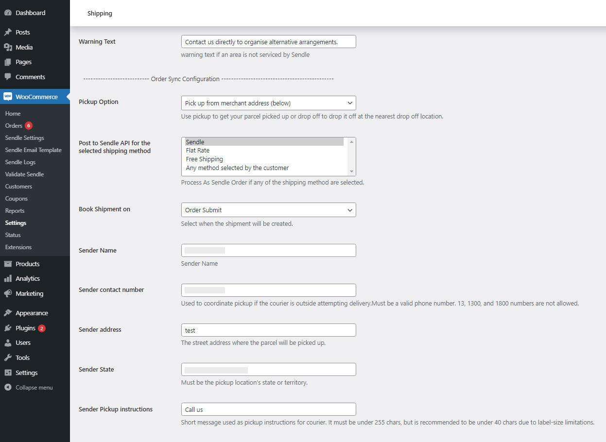 5. Sender contact number :: Used to coordinate pickup if the courier is outside attempting delivery. Must be a valid phone number. 13, 1300, and 1800 numbers are not allowed.6. Sender address :: The street address where the parcel will be picked up.