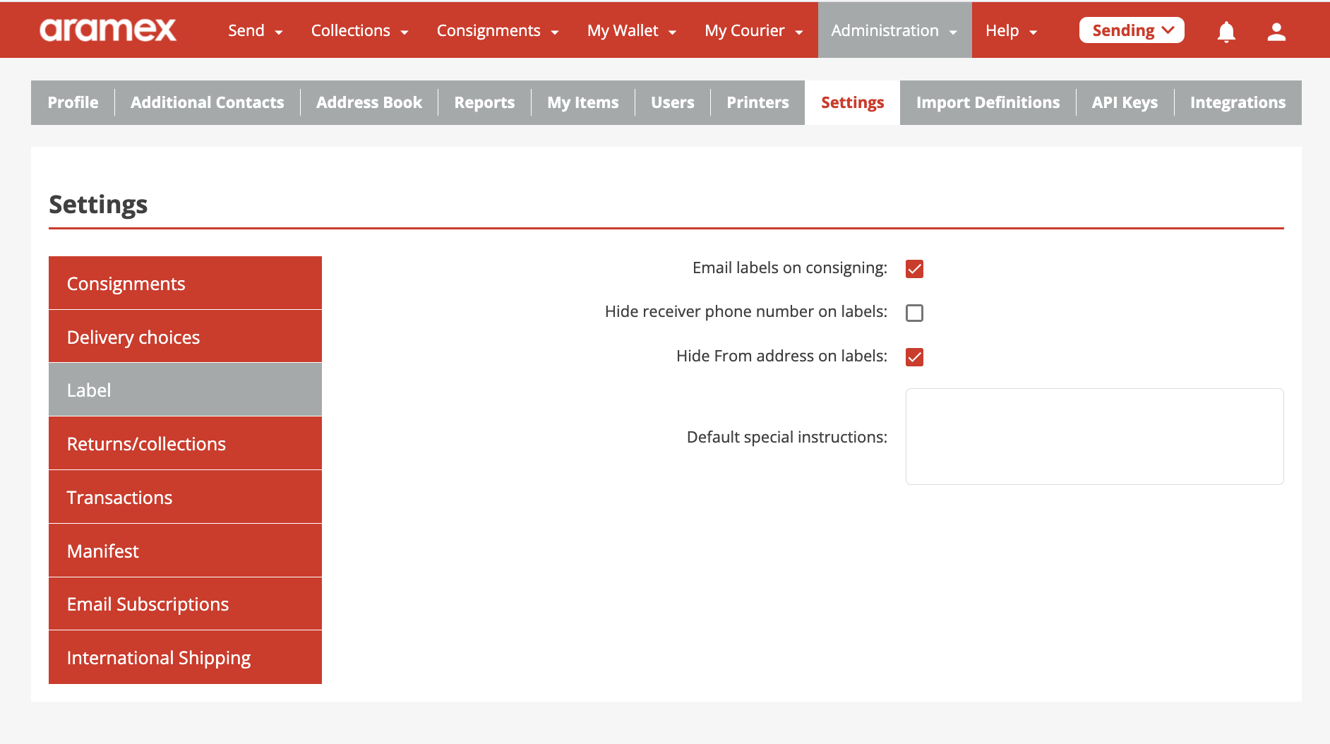 To hide the sender address in Aramex, the info comes from your Aramex Connect account, and your only option is to select to "hide the from address from label". See screenshot below: