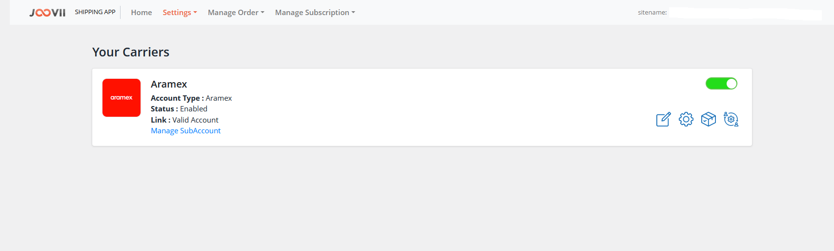 From the settings page you can add/edit account details, update other settings, add/edit package details & Manage Aramex Products/Services.
