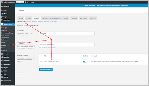 To enable rates at checkout you need to add this plugin to your Shipping Zones. Shipping Zones can be configured in the “Shipping” tab within the WooCommerce Settings menu.