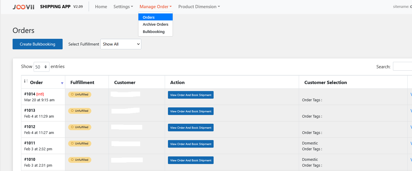 Click on the order blue button - View Order And Book Shipment.