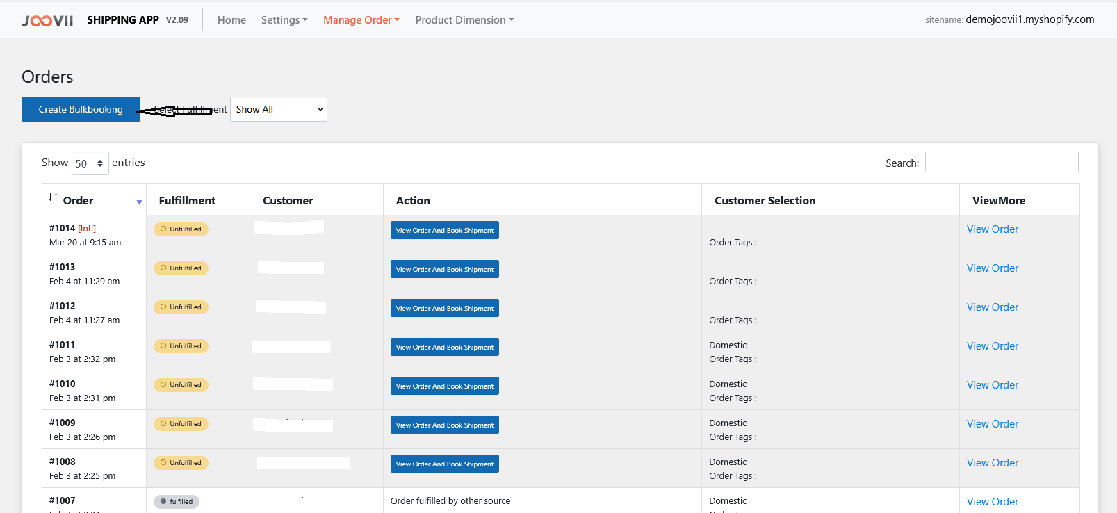 After loading of all quotes you can see the final book button for booking of all selected orders. You can select deselect it to include or exclude that order from the Bulk booking. The quotes are retrieved based on your preferred shipping method.