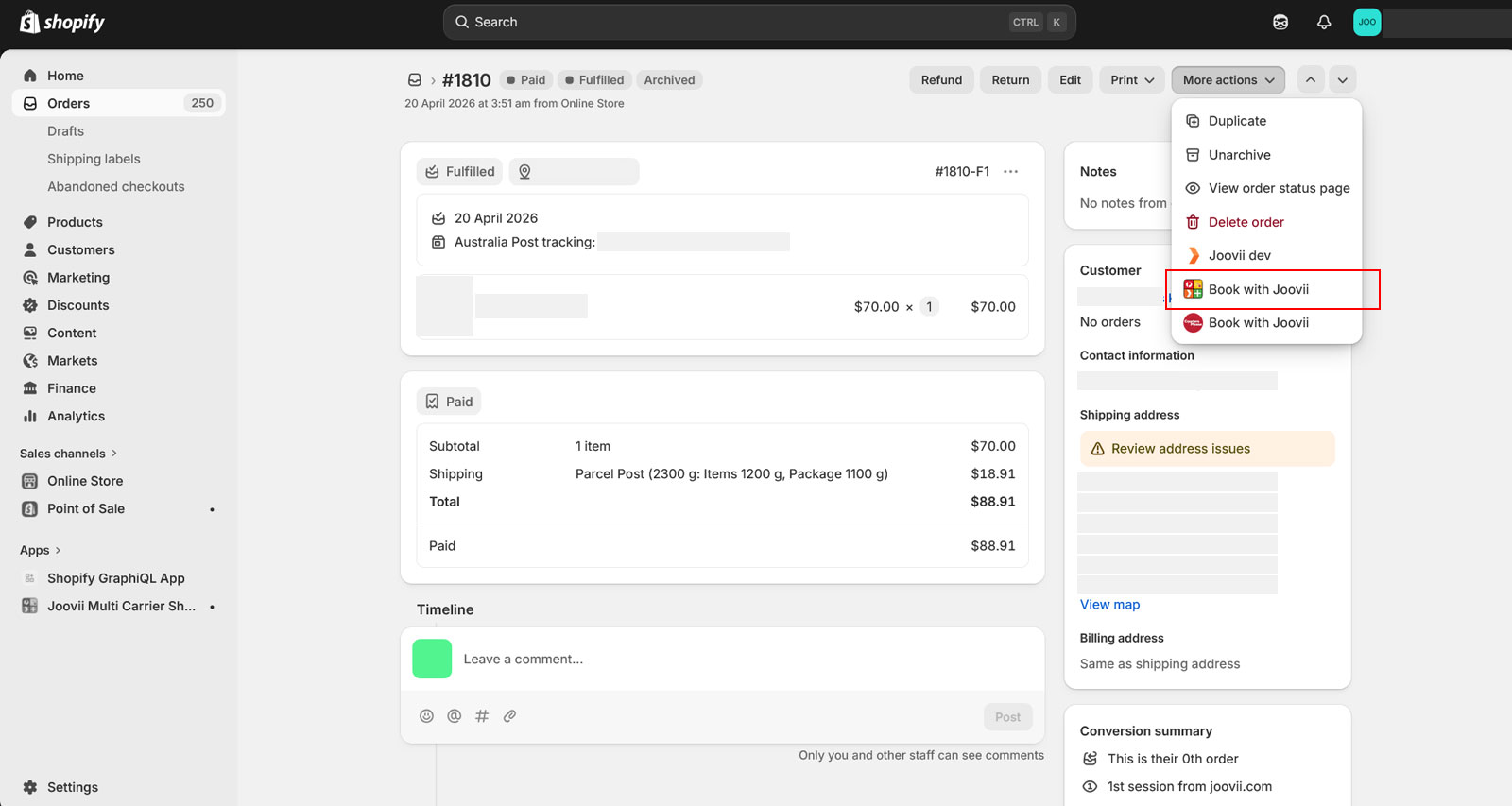 Now click on “More Actions” form right top menu then select “Book with Joovii” for Multicarrier booking